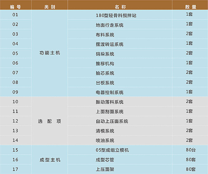 備注:以上包含成套生產線設備